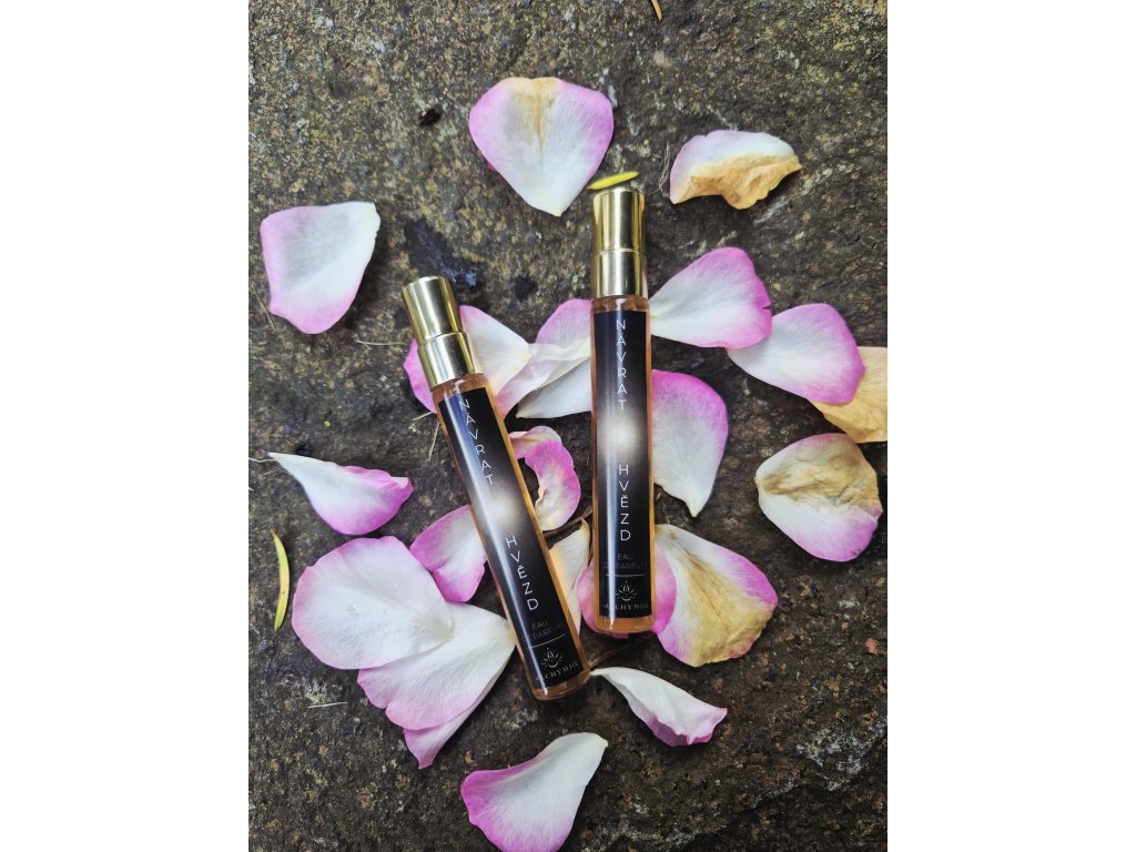 Návrat z Hvězd je nový druh vůně z naší alchymické dílny, jenž doslova zraje s Vámi, neboť již není jako pouhá esence či olejový parfém, ale 22% eau de parfum v bio alkoholu z vinné révy nejvyšší čistoty 96.8% který nezanechává žádnou pachovou stopu a tím pádem u použitých esencí dochází k dokonalé synergii neboli splynutí vůní mezi sebou. Díky vysoké kvalitě použitých přírodních vůní, není potřeba žádných zesilovačů jako u běžně dostupných parfémů a i přesto vůně vydrží na pokožce několik hodin, klidně i půl a více dne.